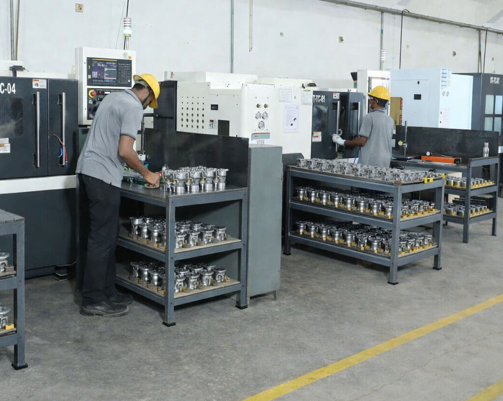Our machining capabilities include CNC turning, CNC milling, HMC, and VMC, enabling precise finishing of complex investment cast components. The in-house machining setup supports tight tolerances, smooth workflow, and reduced lead times from prototype development to production runs. Equipped with modern machines, precision tooling, and skilled technicians, we efficiently handle close-tolerance machining and intricate geometries. Backed by structured quality checks and ISO 9001:2015 (TÜV NORD) certified systems, our facilities ensure reliable performance, consistent quality, and timely delivery for demanding industrial applications.